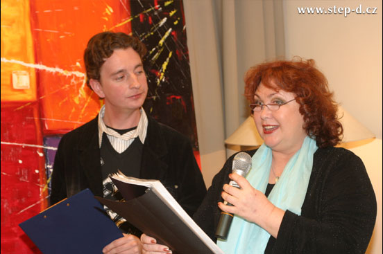 Moderátoři večera - imitátor Petr Jablonský a herečka Naďa Konvalinková