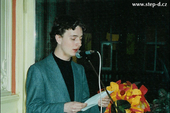 Dalším, kdo pronesl úvodní řeč, byl imitátor Petr Jablonský, lze tušit, že se nejednalo